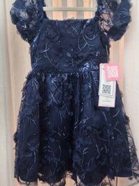 Rare Editions Navy Floral Sequin Party Dress w/Bubble Short Sleeves, S 5&6X, NWT.