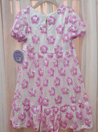 Sparkle & Shine Pink/White Sequin Floral Dress w/Puff Sleeves, Size 6, NWT.