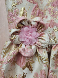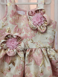 Turn heads at every special occasion in this stunning pink and gold jacquard dress — elegant, timeless, and made to be remembered.